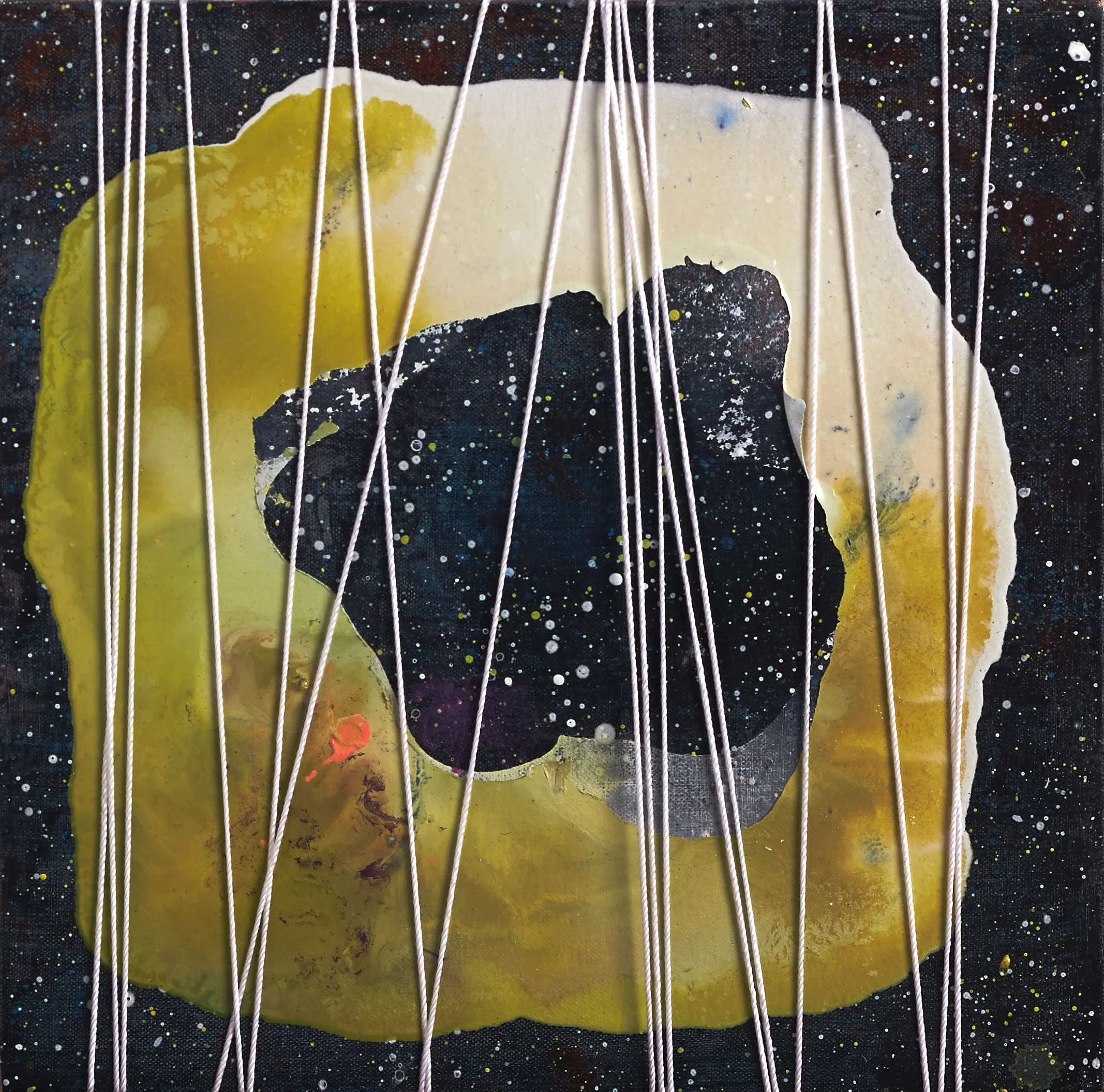 About eighteen months ago I came upon a pile of New Scientist magazines, discarded by the side of the road. It was a serendipitous find, treasure that I trawled through over that summer, feeding my long held interest in quantum theory and cosmology. Scientific theories describing parallel universes, multiple dimensions, and explanations for the structure of reality at the scale of both the infinitely small and infinitely vast provided inspiration for the painting to come. At the core of these theories is the understanding that everything builds on what came before; that everything is connected to everything else; and that despite our greatest compulsions for control and certainty, much of the universe — to which the human heart and mind belong — remains reigned over by chance and uncertainty (2).